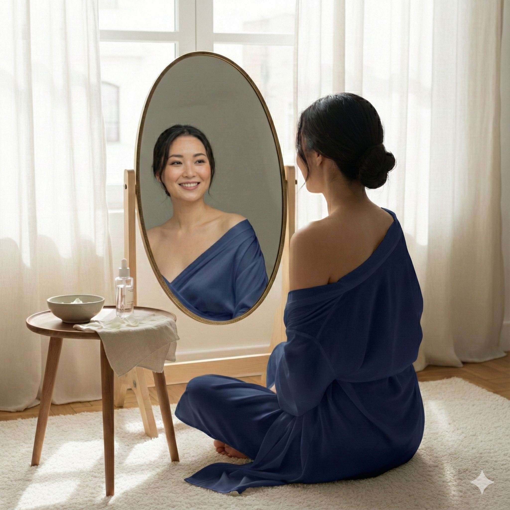 鏡の前で思わず微笑んでしまう、
